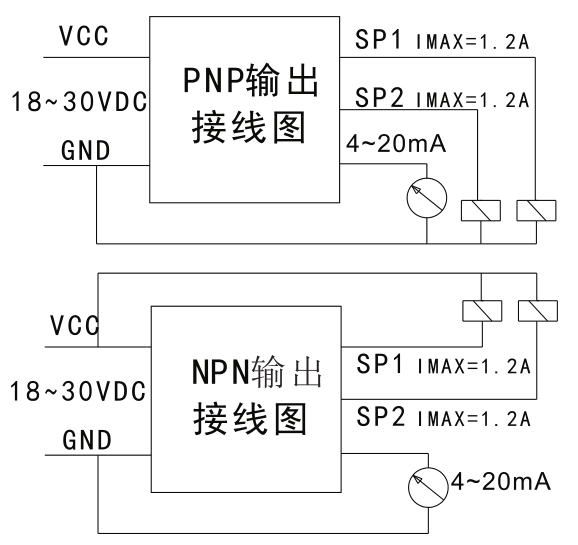 4、兩路開關(guān)量輸出(NPN/PNP),帶載能力1.2A