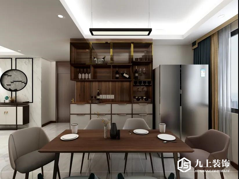QQ咨詢:其實(shí)這個(gè)案例中,客餐廳是一整塊區(qū)域空間,在規(guī)劃上,客廳作為一個(gè)家的顏值擔(dān)當(dāng),沒有定做過多的柜子,而是主要以展示為主。