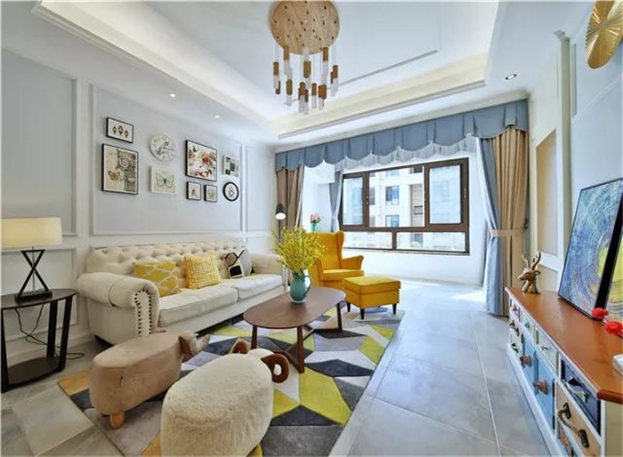 客廳-抽象畫,地中海風味的抽屜,以及現(xiàn)代感的燈飾,還有那一抹黃,整個充滿了濃濃的藝術(shù)氛圍和活力
