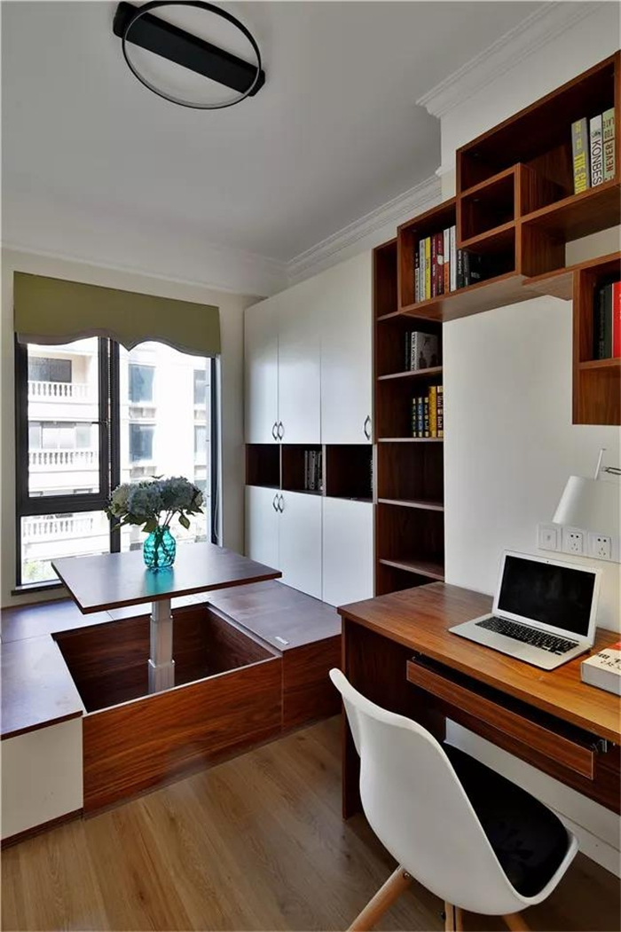 書房-書房的空間合理利用,簡潔的木質(zhì)書柜顯示出大氣的風范