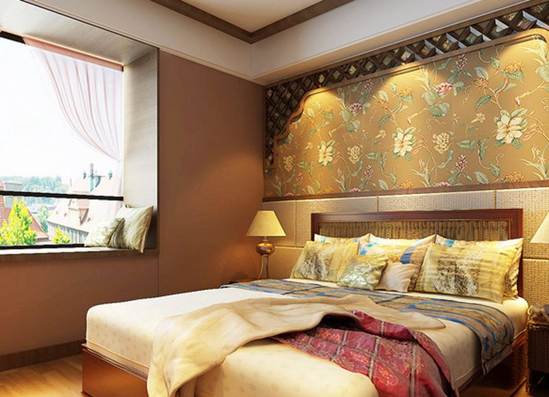 臥室混搭了中式的雅韻,墻面的多元素豐富了視覺看點(diǎn),木質(zhì)窗格框景與婉約花卉壁紙完美演繹,并與疏闊大窗外的自然綠意相映。安逸舒適的民族風(fēng)情家紡,蘊(yùn)含內(nèi)斂溫情的靜謐恬淡。