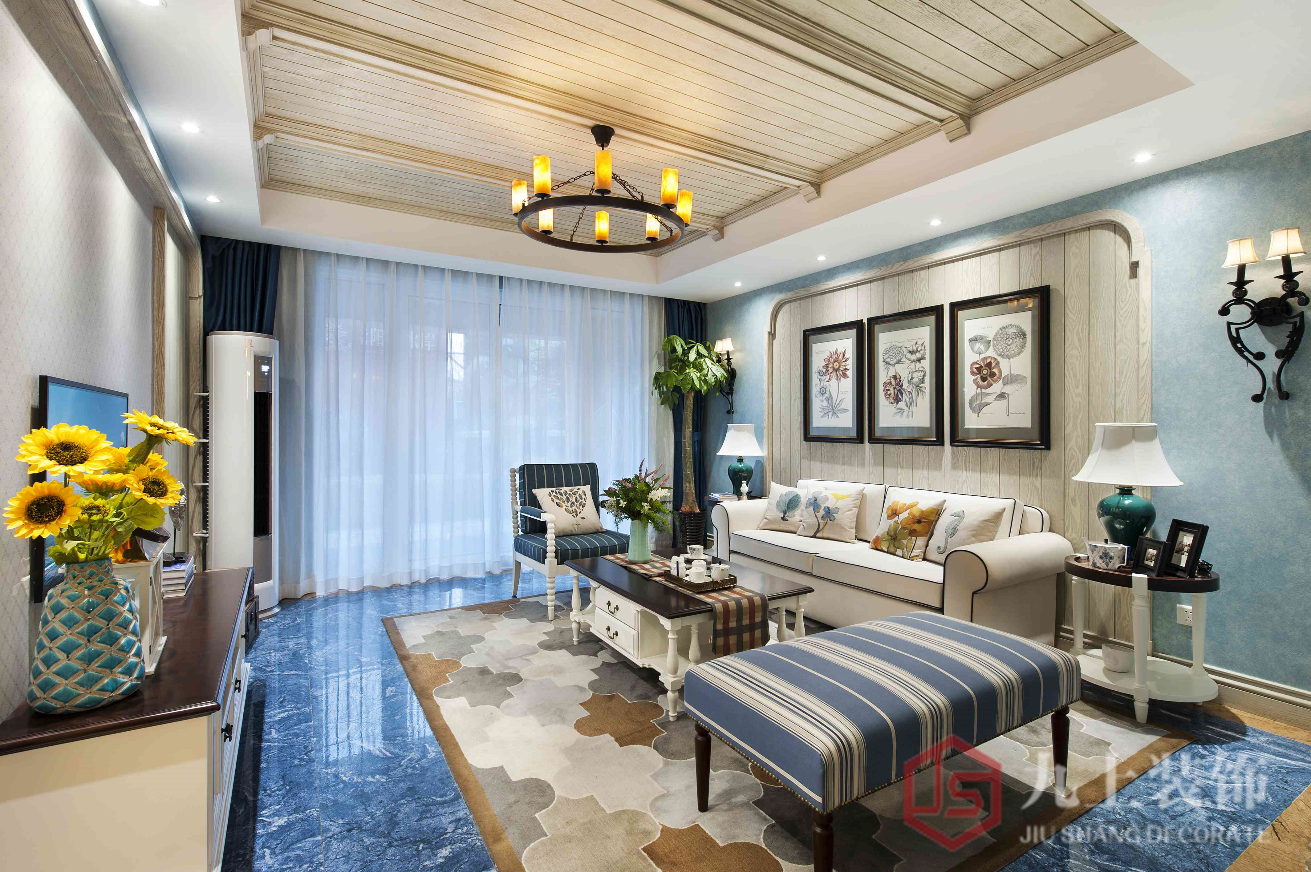 提取地中海常見建筑外觀的白色與愛情海的湛藍(lán)色為軟裝的主色調(diào),將白色的建筑外觀與藍(lán)天碧海、陽光融為一致、延伸至室內(nèi)軟裝的布藝、家具。