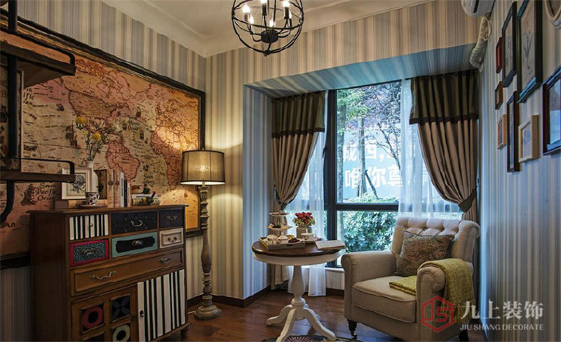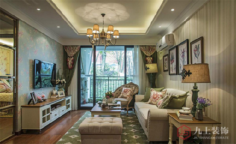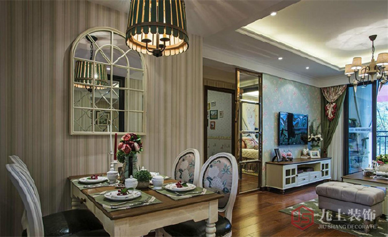 餐廳跟客廳是一個標(biāo)準(zhǔn)的田園淺色系,配上好看的吊燈,韻味十足