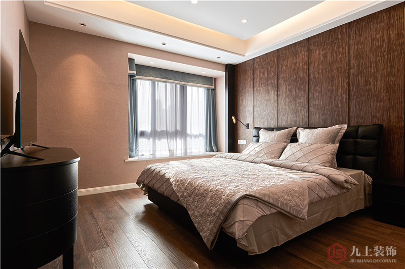 墻紙、地板、家具,顏色深淺有序,富有立體感和層次感。