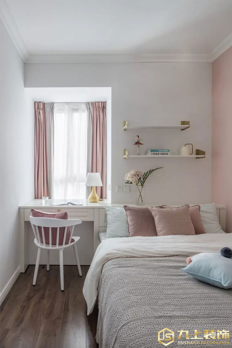 將飄窗位置改造成書桌,方便孩子讀書學(xué)習(xí)。紗簾的使用讓整個(gè)空間的光感更加柔和,保留空間光線的同時(shí)又不刺眼。