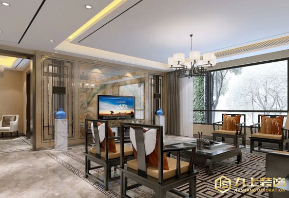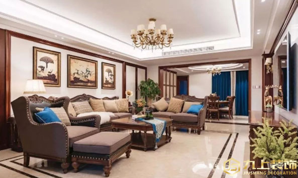 沙發(fā)背景墻與電視背景墻均以石膏線條修飾,提高了整體空間的層次氛圍。