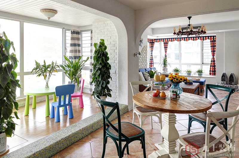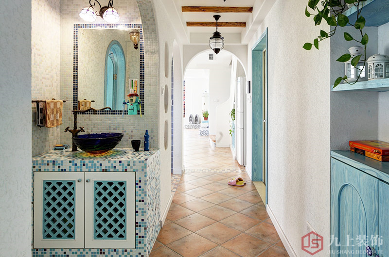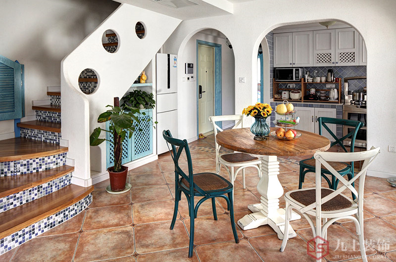 對于地中海來說,白色和藍(lán)色是兩個主打,最好還要有造型別致的拱廊和細(xì)細(xì)小小的石礫。在打造地中海風(fēng)格的家居時,配色是一個主要的方面,要給人一種陽光而自然的感覺。主要的顏色來源是白色,藍(lán)色,黃色,綠色以及土黃色和紅褐色,這些都是來自于大自然最純樸的元素。