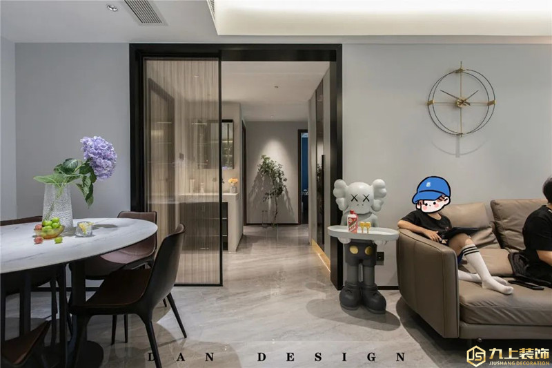 過道設(shè)在客廳沙發(fā)墻與餐廳之間,中間的動(dòng)線相對寬敞,為家人提供了一個(gè)舒適寬松的居家環(huán)境。