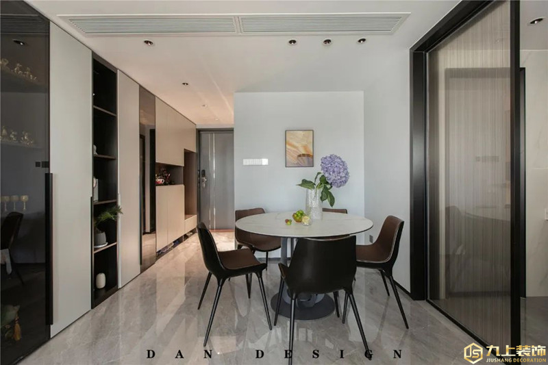餐桌上擺上花瓶插入紫色鮮花,在簡約現(xiàn)代的餐廳空間下,也是顯得格外的浪漫優(yōu)雅。