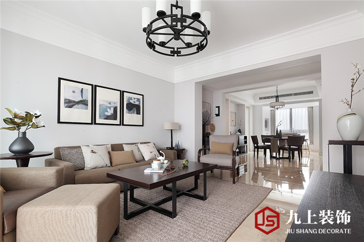 QQ咨詢:整個客廳布局比較小,最后將沙發(fā)背景墻設(shè)計成掛畫的墻面