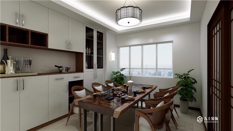 由于面積充足,業(yè)主對于生活品質(zhì)要求比較高。餐廳設(shè)計了整體酒柜。既可以儲藏,又增加 了美觀性。
