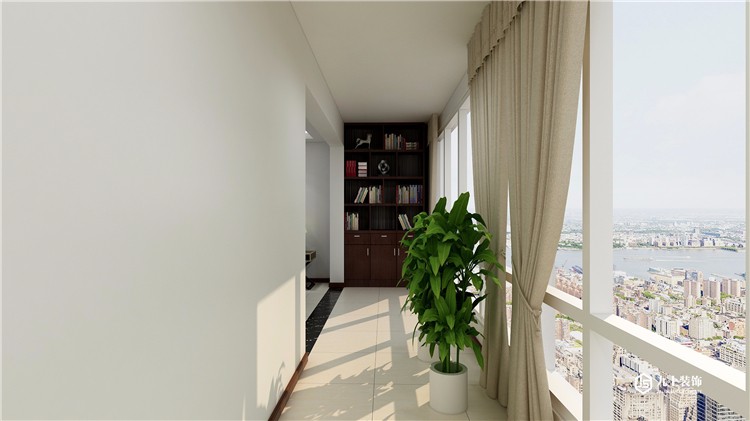 陽臺采用落地大窗戶,視野好,觀景。墻面做了書柜,增加空間利用率。