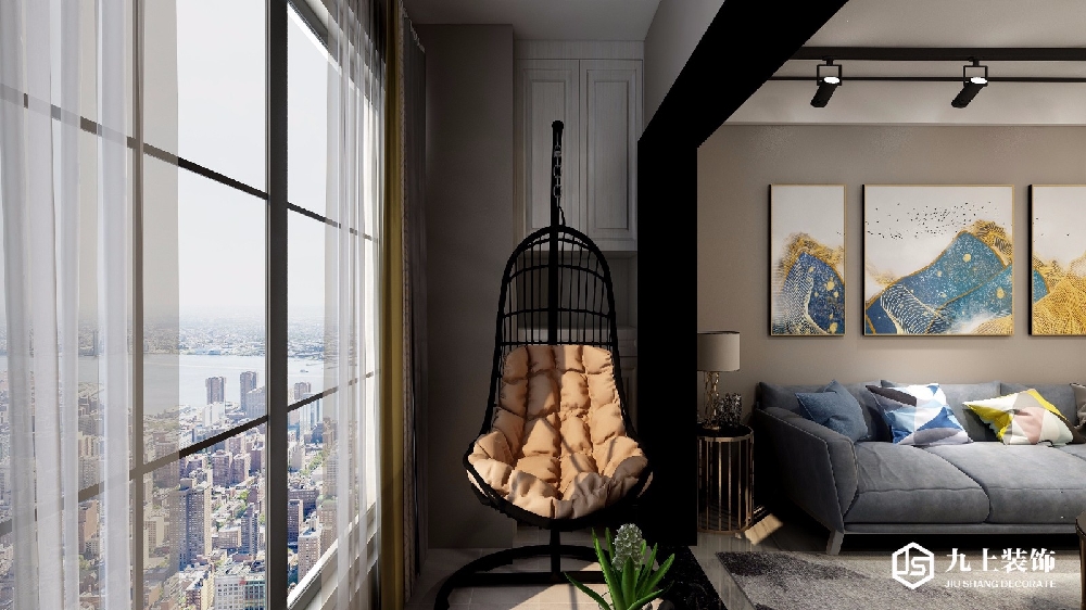 為了滿(mǎn)足客戶(hù)對(duì)生活品質(zhì)的要求。陽(yáng)臺(tái)采用大落地窗,視野開(kāi)過(guò),光線充足。配以獨(dú)立的吊椅,愜意無(wú)比。喝茶,聊天,午休,賞景,自由自在。