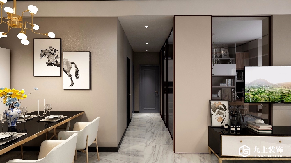 過(guò)道鏈接書(shū)房客廳餐廳臥室,簡(jiǎn)約線條,增加空間感。