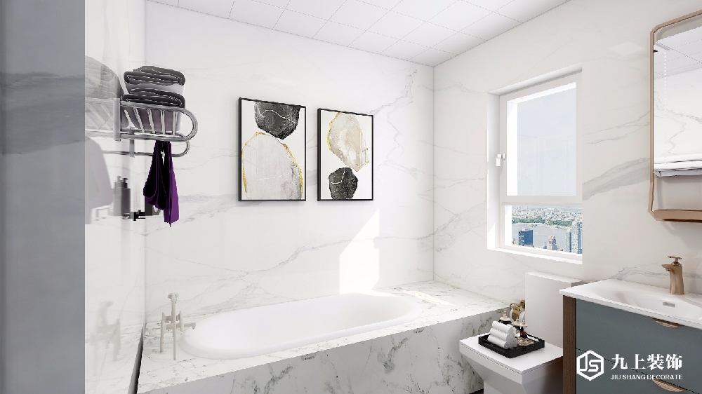 次臥選擇了浴缸,磨紋墻磚和浴缸完美融合,極大的增加了視覺(jué)空間感。