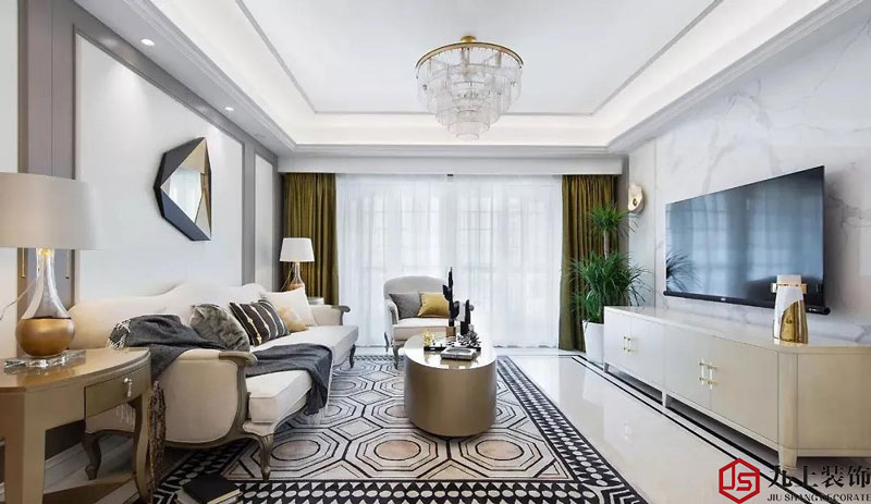 米色美式沙發(fā)優(yōu)雅而舒適黑色與金色元素在整體色彩中的穿插運(yùn)用帶來充滿張力的空間魅力雅奢氛圍蔓延開來