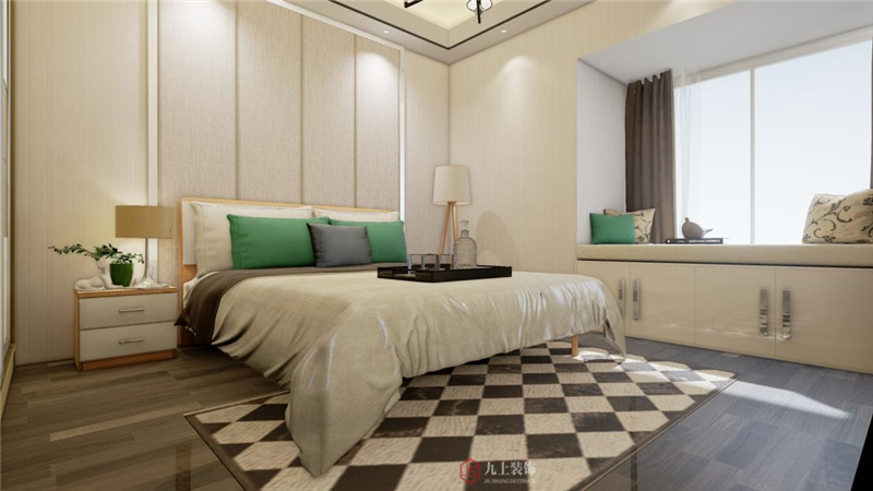 床頭柜以及衣柜的搭配更好的與空間相融洽,顯得很有層次感,使整體的空間顯得簡約而不簡單