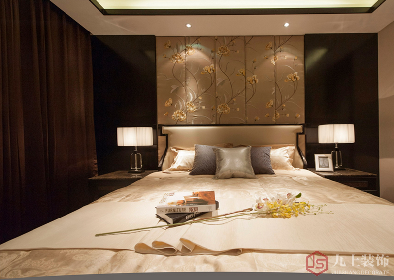 主臥清秀典雅,典雅的臺燈,典雅的背景墻。
