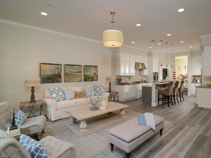 開放式廚房與客廳相連,通透寬敞,在客廳就能聞到女主人飯菜香。
