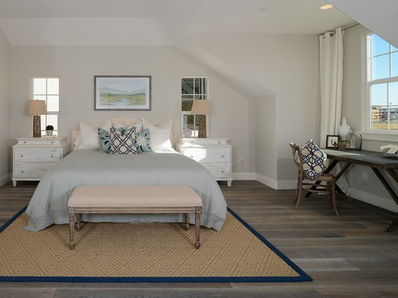 超大主臥,床邊兩個對稱白色床頭柜與整體色調(diào)一致,亮點是主臥帶衛(wèi)浴,洗漱超方便。
