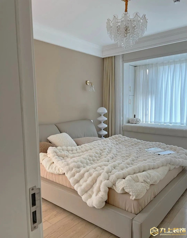 臥室空間主要以休息為主,簡(jiǎn)約乳膠漆墻面粉刷,靜音木地板通鋪更有益于睡眠。