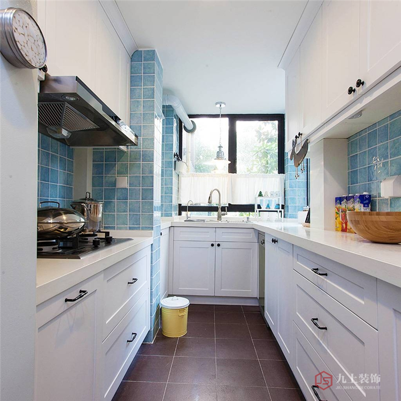 廚房的門口一邊做了一個到頂?shù)碾p門柜,用來放放那些女主人陪嫁的名貴瓷器以及男主人收藏的美酒