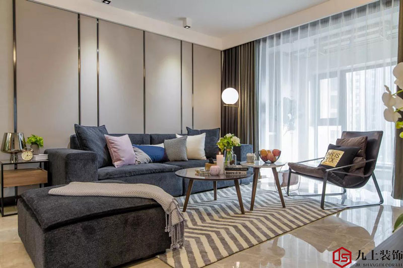 現(xiàn)代輕奢風(fēng)格的優(yōu)雅大氣,從各個(gè)角度散發(fā)出對(duì)生活品質(zhì)的追求,是很多年輕都市白領(lǐng)最喜歡的室內(nèi)裝修風(fēng)格之一。輕奢風(fēng)格裝修,兩室兩廳比較符合多數(shù)年輕人購(gòu)買(mǎi)需求。客廳軟糯的布藝沙發(fā)+線條簡(jiǎn)潔的高低茶幾打造出非常經(jīng)典的布局,沙發(fā)背景墻則是選用皮革硬包+金屬邊框,非常有質(zhì)感的設(shè)計(jì)。
