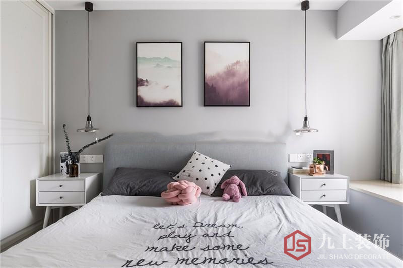 每當疲憊的時候最想停留的港灣。整個空間我們采用了大面積淺灰色的乳膠漆,讓身心得到放松,簡潔而溫柔。筒燈的光源打在墻上讓房間更溫暖,帶有強烈風格的掛畫和小擺件也是我們美好生活的一部分,在家,享受從容自在的歸屬感。