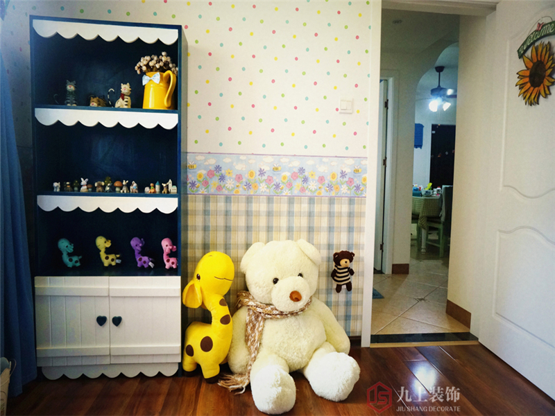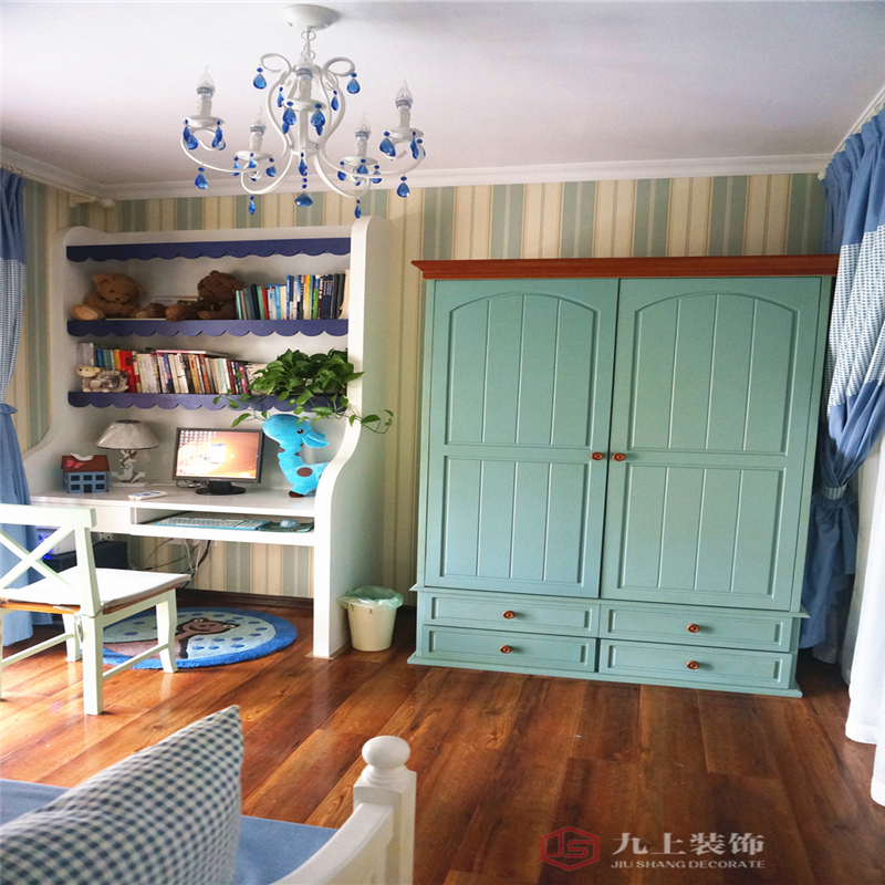 兒童房藍(lán)色衣柜位置原來硬裝是做了層架的,但是這樣就不好擺放衣柜了,我們認(rèn)為擺放衣柜更實(shí)用些,所以就把它拆掉