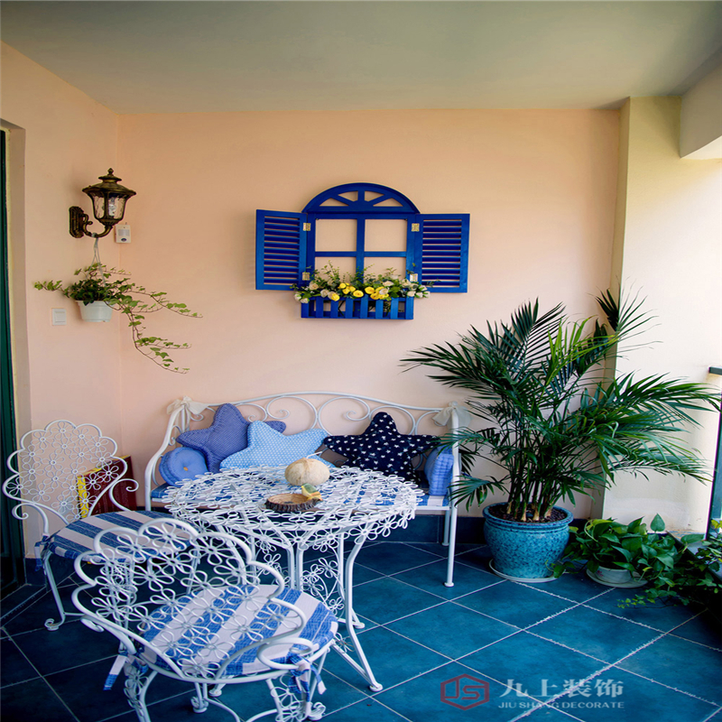 通過一些彩色海星,貝殼,柵欄,藍(lán)色的布藝窗簾來達(dá)到地中海的感覺
