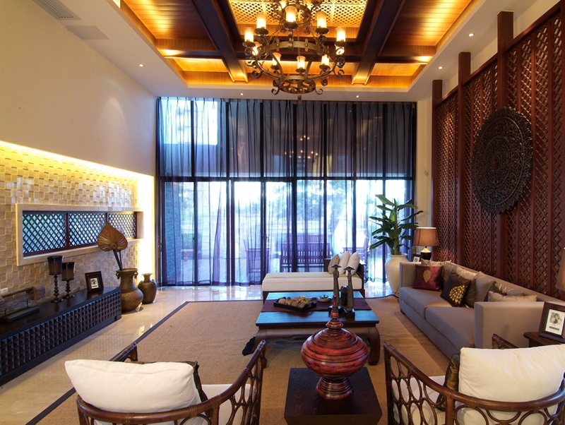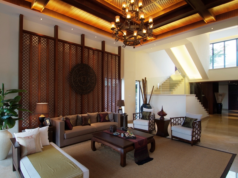 在家具配置上,東南亞風(fēng)格經(jīng)常選用厚重、大氣的實(shí)木家具,而且家具線條凝練,祥潤(rùn)的花紋搭配簡(jiǎn)潔的設(shè)計(jì)體現(xiàn)出東南亞的民族風(fēng)情
