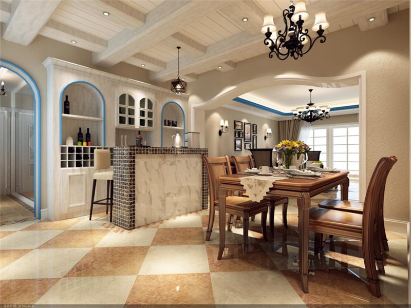 QQ咨詢:地中海風格起源于文藝復興前期的西歐,因其富含親和力的田園風情和柔和的色調(diào)搭配,漸漸受到地中海以外的人們的喜愛和追捧。地中海的美,包含了大海和天空明朗的顏色。下面請欣賞這套裝修案例效果圖。