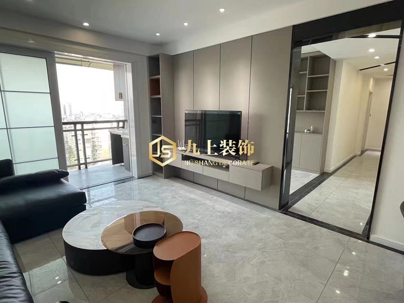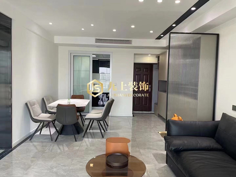 業(yè)主簡約的要求,整個客廳采用無主燈設計,無形中減少主燈帶來的視覺壓抑感,整個空間采用黑白灰色系,更加的簡約大氣。