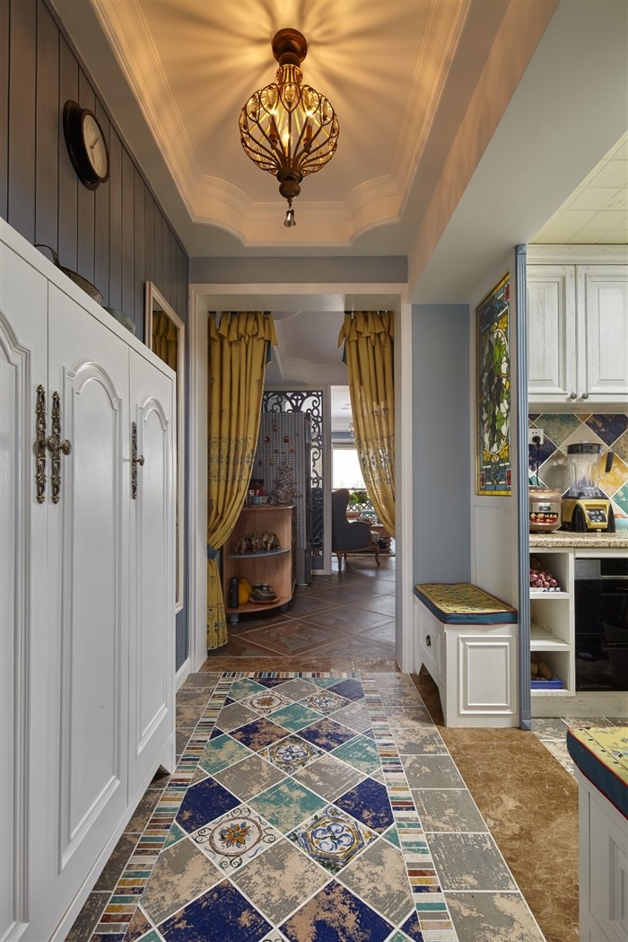 玄關(guān)-溫馨的暖燈,讓歸家的人一種滿滿的歸屬感。地中海風格地磚充滿濃濃的異域風情,給人眼前一亮的感覺