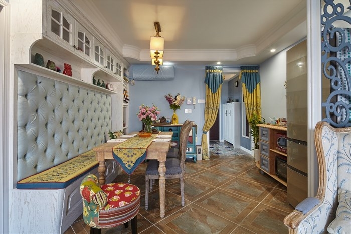 餐廳-背景墻別具匠心,顯得大氣而上檔次?,F(xiàn)代簡約和地中海風格巧妙結(jié)合碰撞出了混搭的獨特