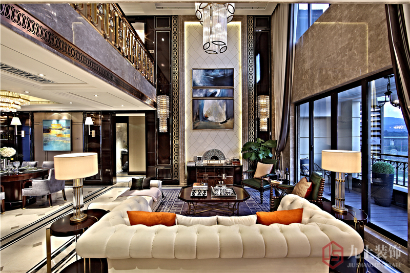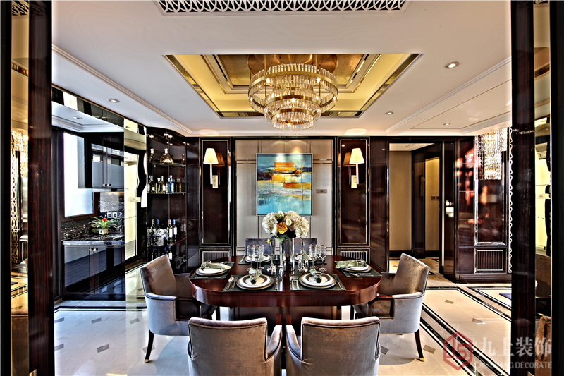 頂部用大型燈池,并用華麗的水晶吊燈營(yíng)造氣氛。