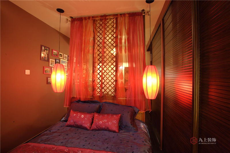 臥室家具及裝飾皆采用東南亞風(fēng)濃烈的色彩,搭配夢(mèng)幻曖昧的燈光,充滿(mǎn)異域情調(diào)。