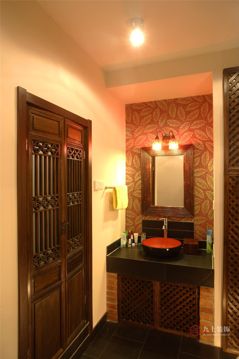 洗漱臺(tái)依舊帶有濃濃的東南亞風(fēng)。