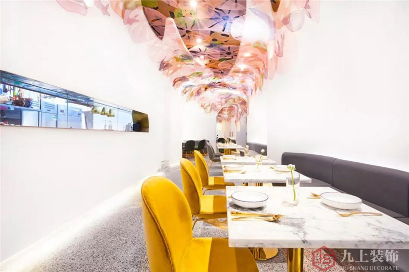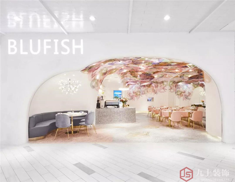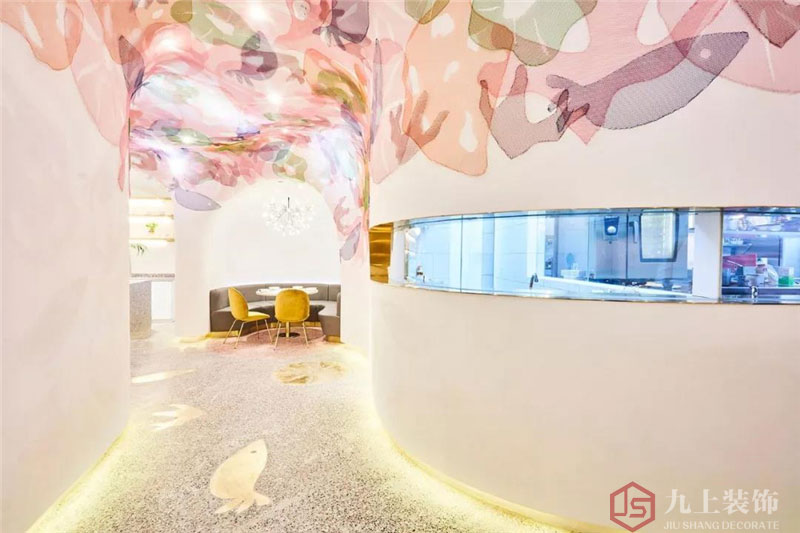 QQ咨詢(xún):我們以清透的白為基底,藍(lán)與粉等色彩交織的金屬網(wǎng)從頂部天花向下延伸,營(yíng)造整體充滿(mǎn)夢(mèng)幻與流動(dòng)感的水下世界。