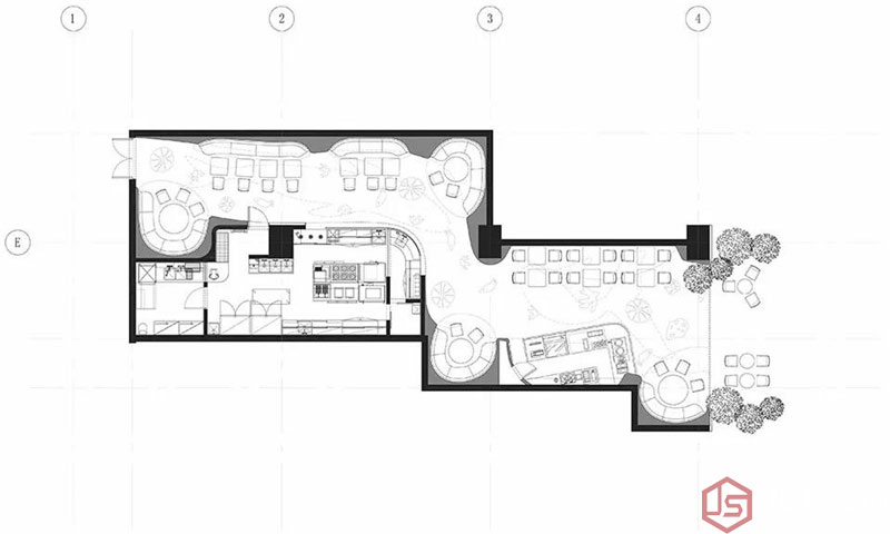 兩個(gè)就餐區(qū)域借助空間中的自然曲面形態(tài)得到了連續(xù)感的強(qiáng)化,最大程度的利用有效層高。同時(shí)還將空間衍生,營(yíng)造出4個(gè)如海底洞穴般的單元,做為較獨(dú)立的就餐位置。