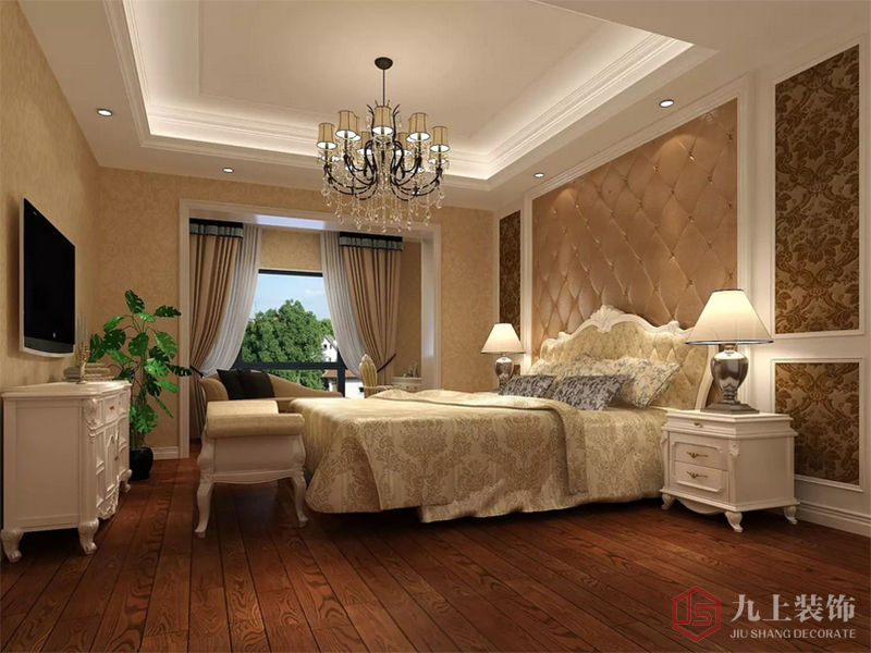 臥室深色調(diào)的暖色調(diào),則給人溫馨、沉穩(wěn)的感覺(jué)。