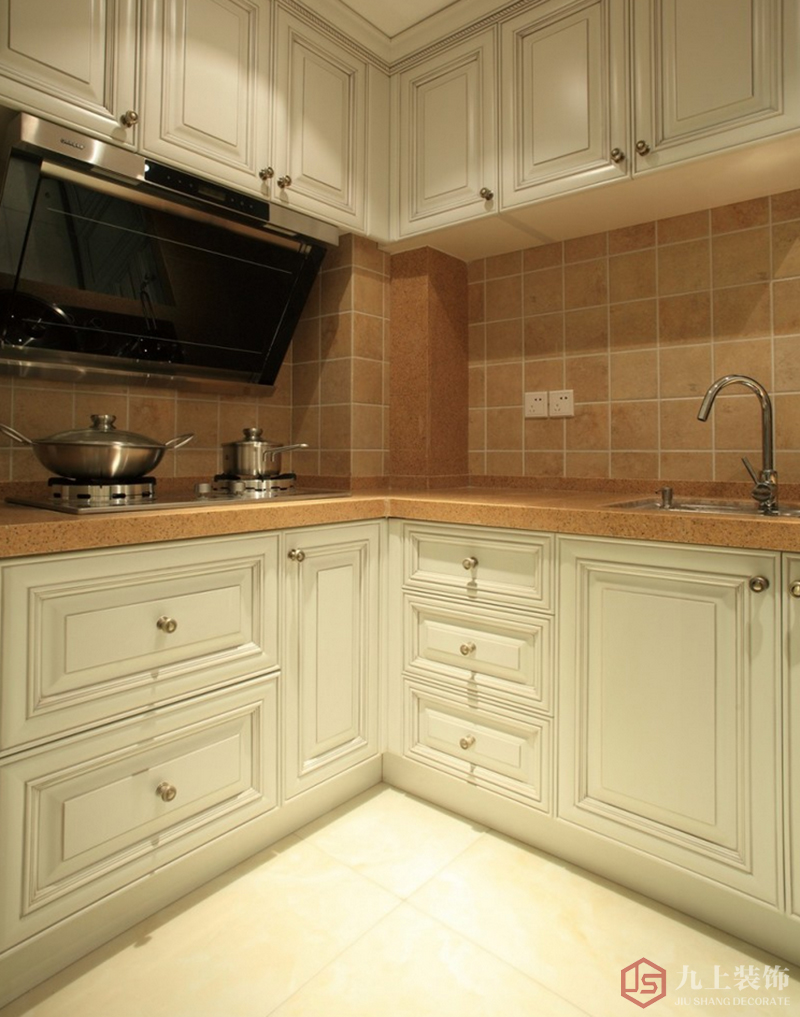 門檻石、找平、防水、包雙水管、鋁扣板吊頂、平開門、櫥柜、墻地磚、地漏、水槽龍頭、照明燈、煙機(jī)灶具、冰箱。