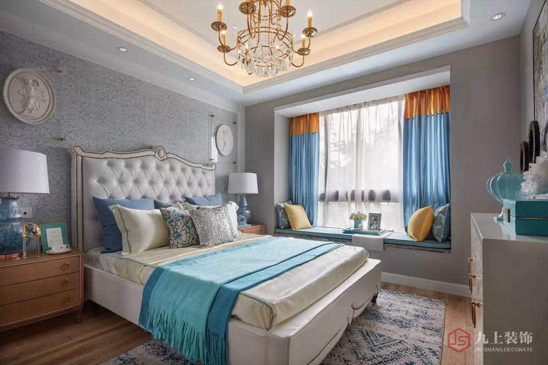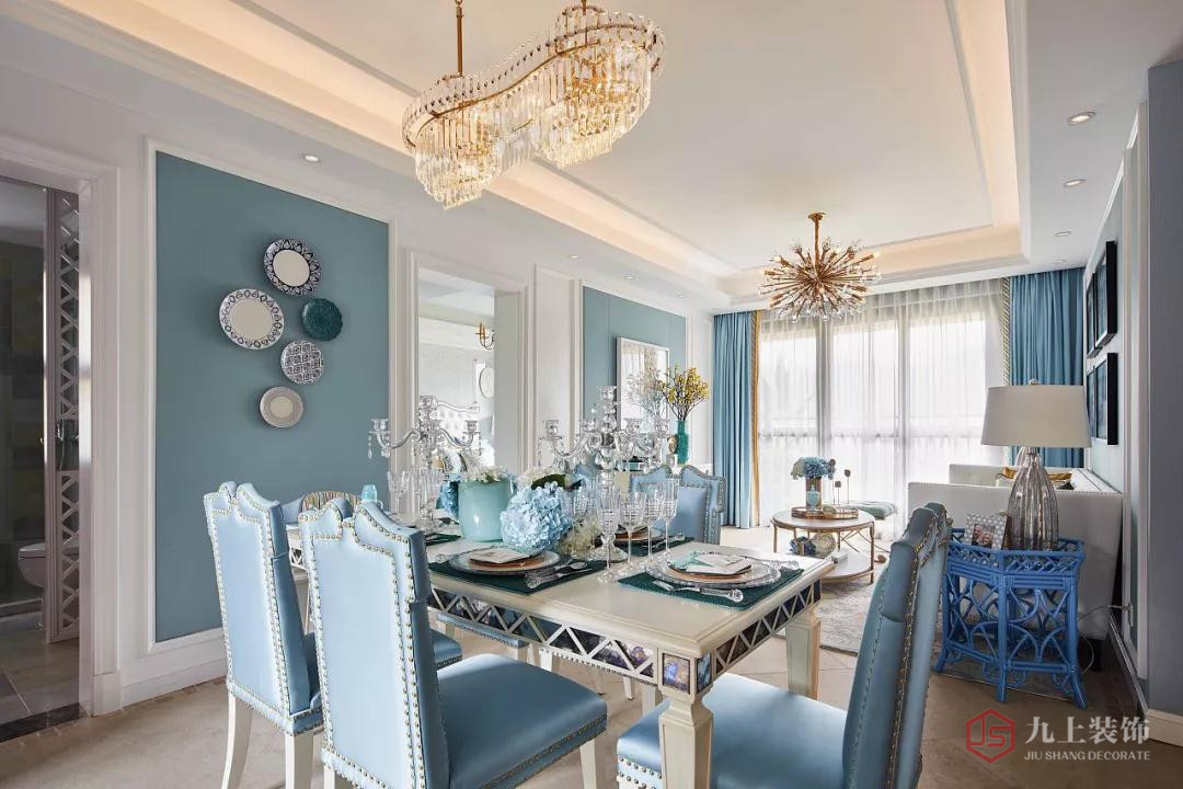餐廳延續(xù)客廳的淺藍(lán)色調(diào),水晶燈和各種餐具的加入,讓空間看起來十分的精致。美式餐桌椅優(yōu)雅大方,越看越喜歡。